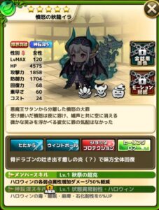 ハロウィン限定ではありますが、各弱点属性のダメージを軽減させる超便利スキルを所持!