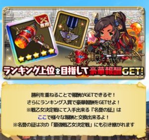 名誉の証…過去の最強戦乙女決定戦報酬(一部)と交換できる