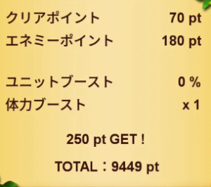ブーストユニット無し、で獲得できるポイントは約250