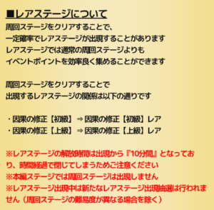クリアした周回ステージの難易度でレアステージが異なります。