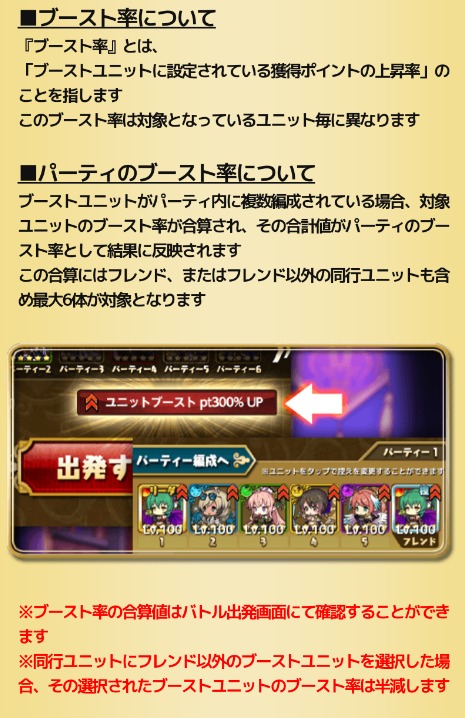 対象のブーストユニットを所持していない場合は是非育成し、パーティに入れましょう!