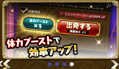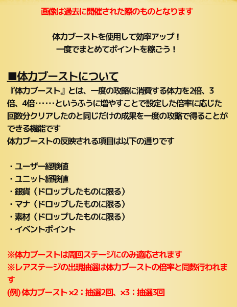 もちろん体力ブーストを使ってもOKですが消費体力とレアステージの出現率は変わりません。