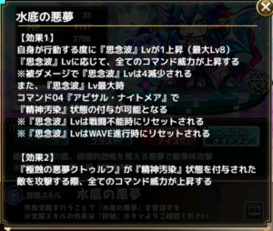 また、『思念波』Lv最大時コマンド04『アビサル・ナイトメア』で『精神汚染』状態の付与が可能となる