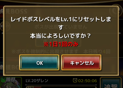 一日一回、レイドボスのレベルを1に戻すことが可能。