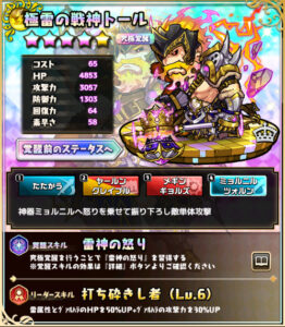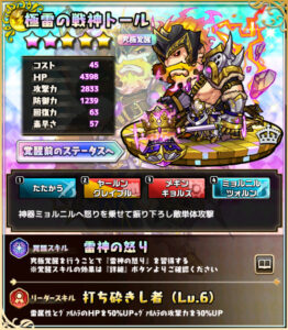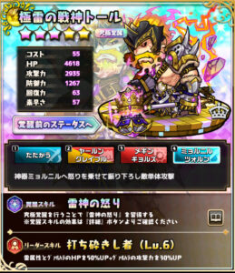 雷属性とヴァルハラのHPを50%+ヴァルハラの攻撃力を30%UP