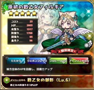 戦乙女と炎属性の攻撃力を50%UP+戦乙女の回復力を30%UP