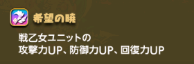 希望の暁:パーティ内の戦乙女のカテゴリの攻撃力、防御力、回復力をUP