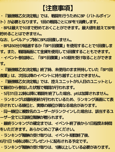 ・最終日には1500位内になるように金貨でBPを回復して戦う