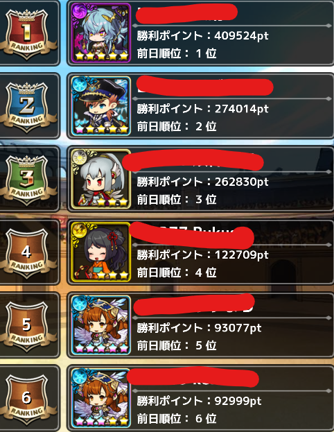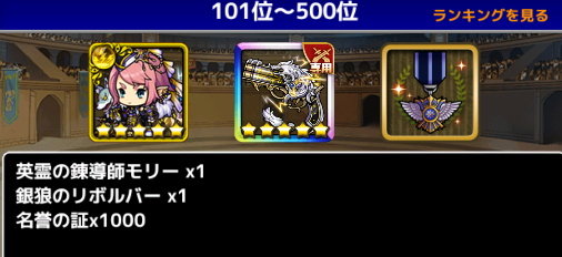500位以上となると★5装備の奪い合いとなるため、かなり金貨を砕く必要があります。