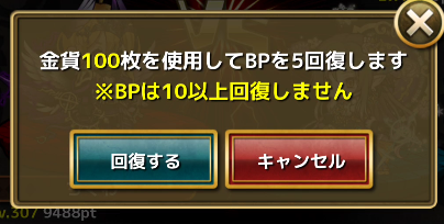 バトルに必要なBPは1時間で1回復します。
