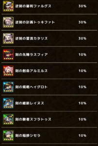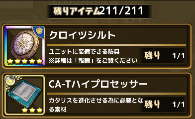 その他、カタリス(ユニット)や進化素材など豪華な報酬がありますが、とりあえずコンプリートするのが大変な極神の宝箱を狙います。