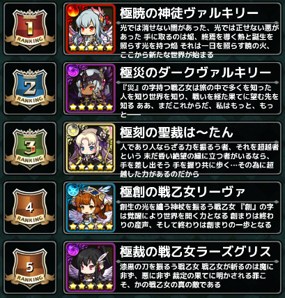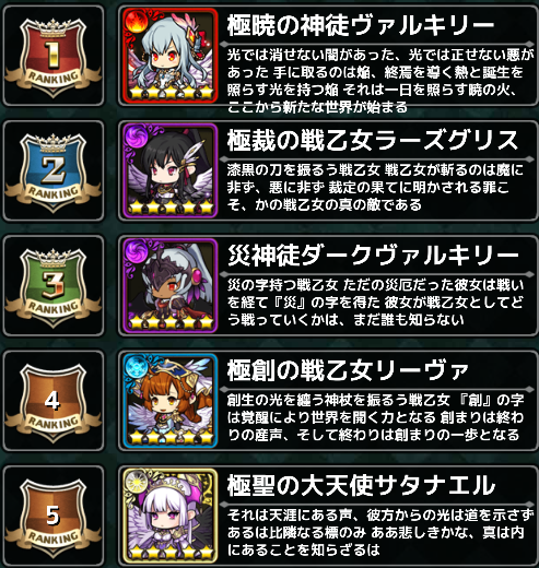 | 2位 | ダークヴァルキリー | ダークヴァルキリー |