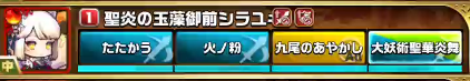 4【大妖術聖華炎舞】大妖術の輝きで敵単体に攻撃し与えたダメージの一部を吸収して自身を回復する
