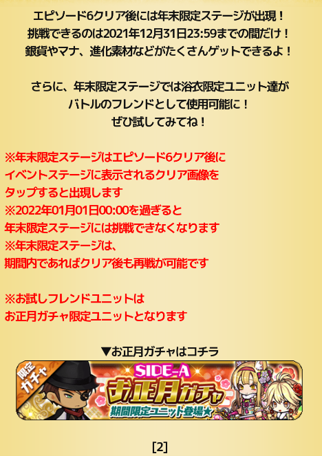 正直勝てる気がしませんが5体編成&連続バトルの正月オールスター激ムズEXとか欲しかったですね。