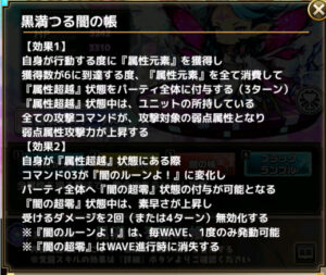 自身が『属性超越』状態にある際コマンド03が『闇のルーンよ!』に変化しパーティ全体へ『闇の超零』状態の付与が可能となる