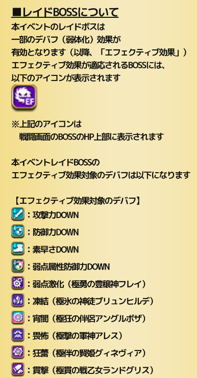 デバフ対象ユニットは弱点属性の攻撃を受けると普段よりも多くダメージを受けます。