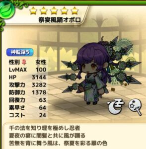 スキルは通常の風神楽に加え、浴衣であれば攻撃力UP