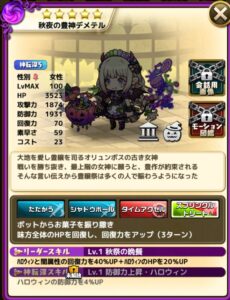スキルは回復力UPの聖戦に加え同じハロウィンならHPが上昇する祝福。