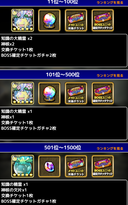 また討伐数ミッションで100体ボスを倒すと知識の大精霊が入手できます。