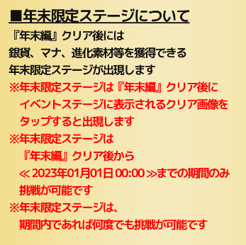 前半クリア後、期間限定で素材が多く手に入るステージが出現します。