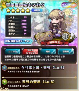 かなり緩い条件(素早さUP神楽系のスキル推奨)でCG回復が狙えるのとクリティカルバフが強力です。