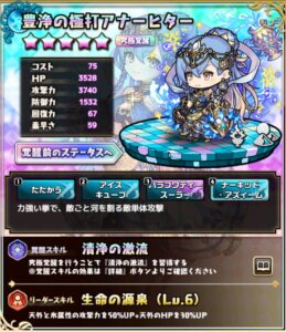 シンプルな火力アタッカーかつCG回復効果に加え氷属性を自動で強化させることが可能です。