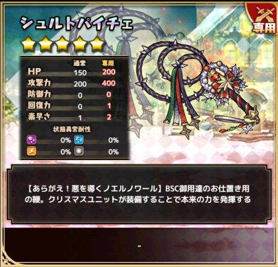 基礎の性能はやや控えめですがクリスマスユニットの素早さが追加で上昇しますね。記念品の要素が強いかも。