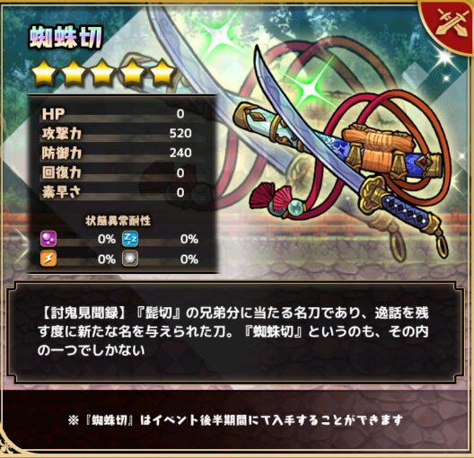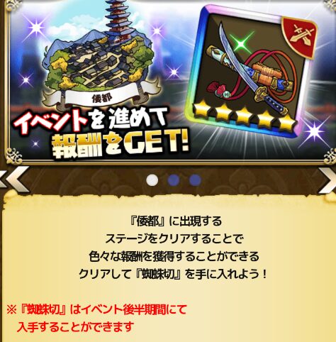 報酬:蜘蛛切とイベントガチャチケット5枚