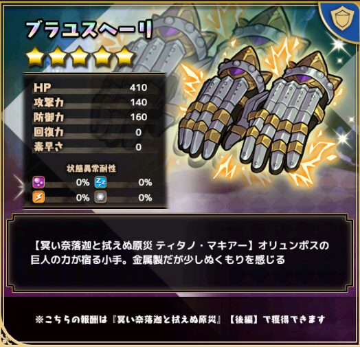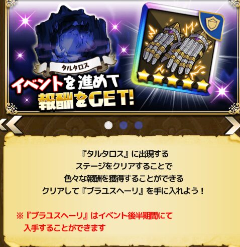 報酬:イベントガチャチケット枚とブラユスヘーリ